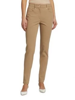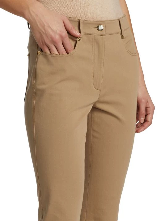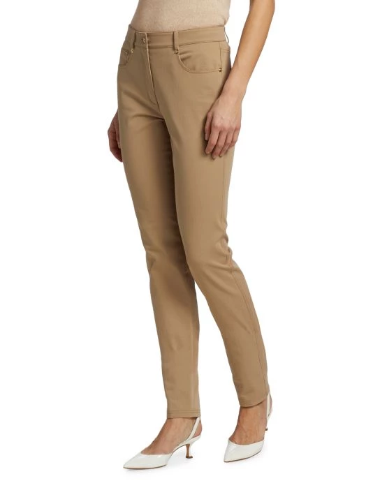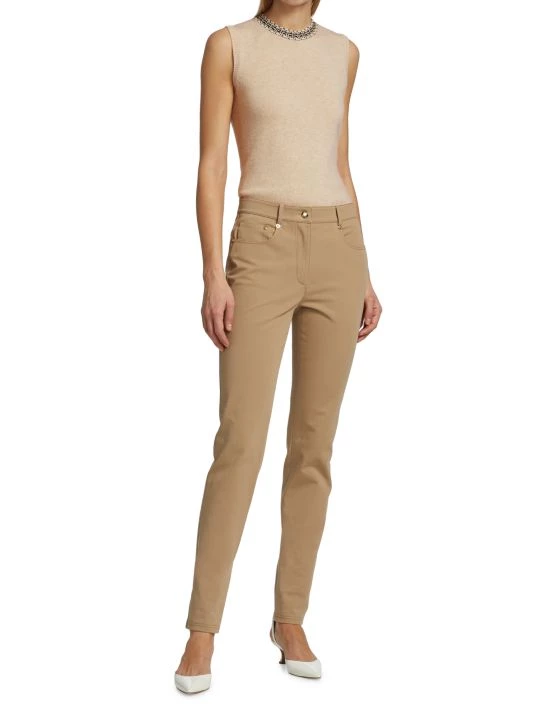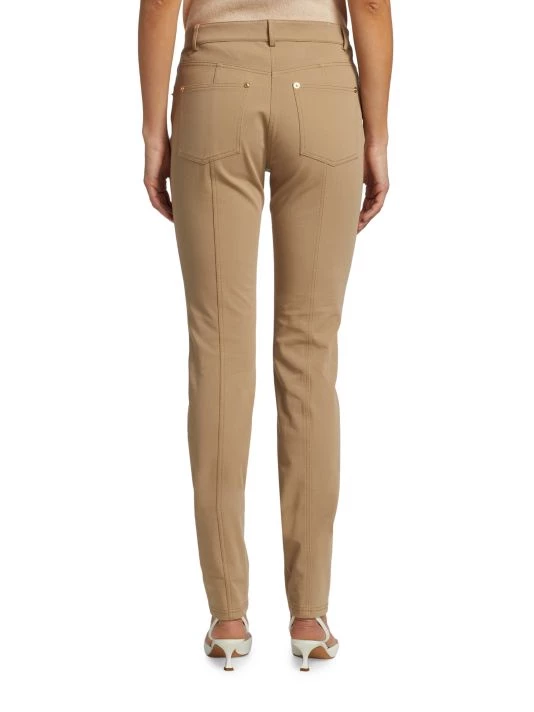 These bi-stretch cotton gabardine pants by St. John feature a skinny-leg silhouette with a mid-rise waist and five-pocket style.