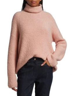 Crafted from soft bouclé, St. John’s plush sweater features a cozy cowl neckline.