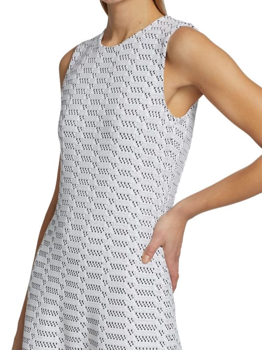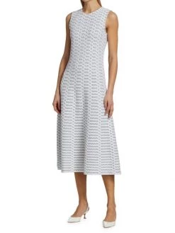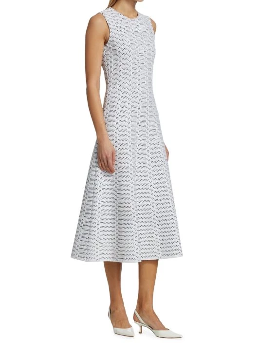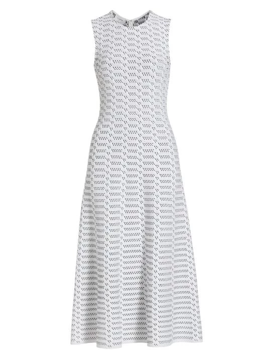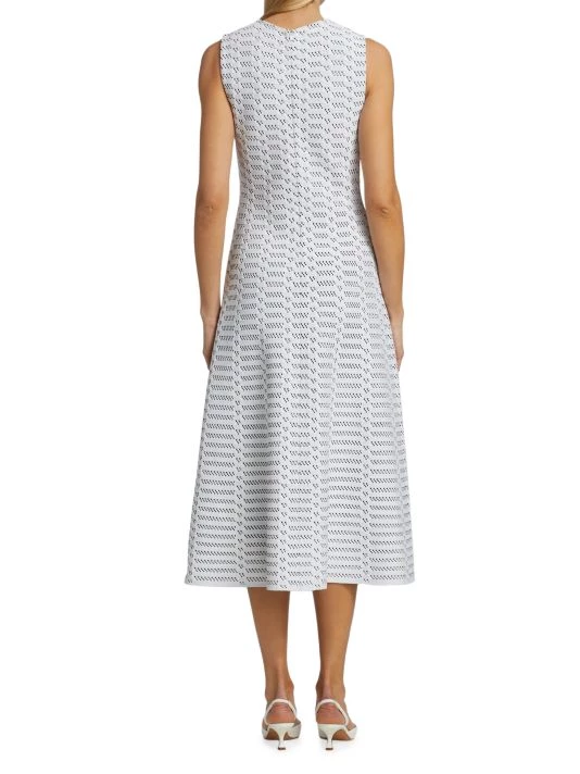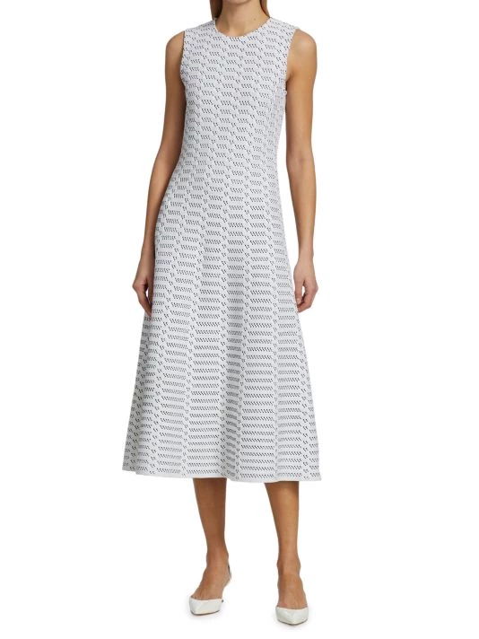 Cut in a flared silhouette, this sleeveless midi-dress boasts textured jacquard knit patterning.