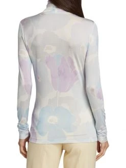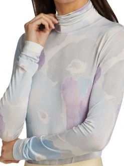 Form-fitting turtleneck top with painterly, watercolor-inspired floral print.