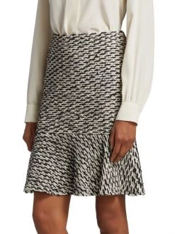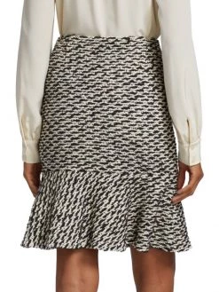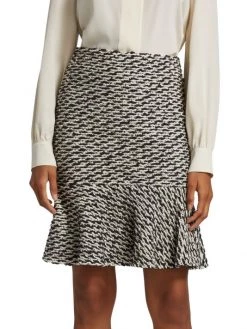 A peplum hem trims St. John’s tailored graphic bouclé-knit skirt.