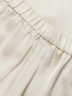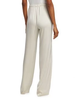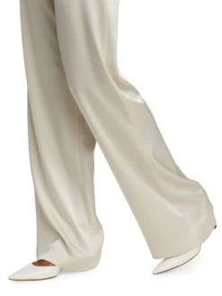 St. John’s lustrous satin pants feature a wide-leg silhouette and an elasticized high-rise waist.