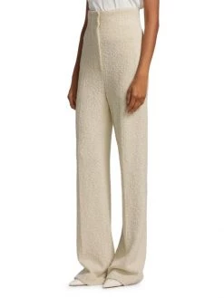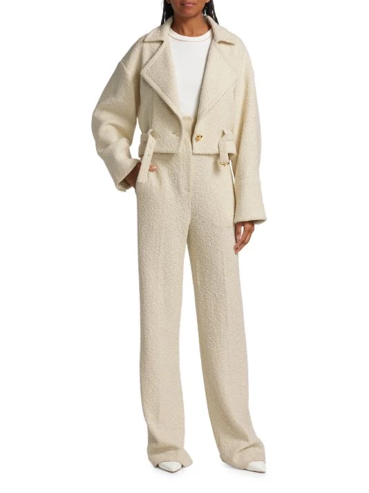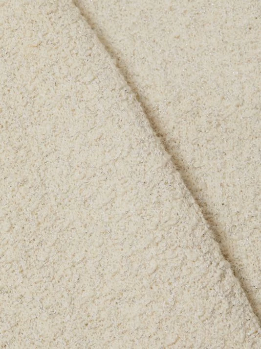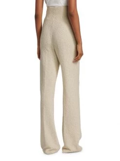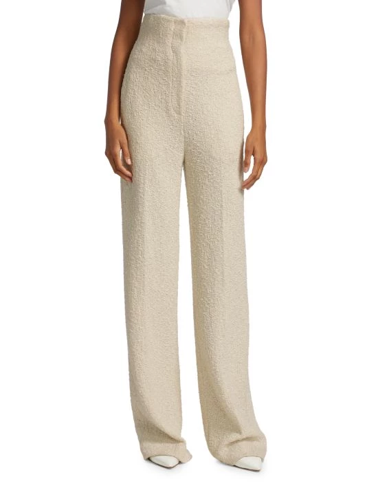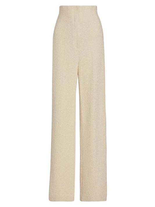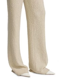 Cut in a wide-leg silhouette, St. John’s high-waisted tweed pants boast textured bouclé knitting and subtle metallic detailing.