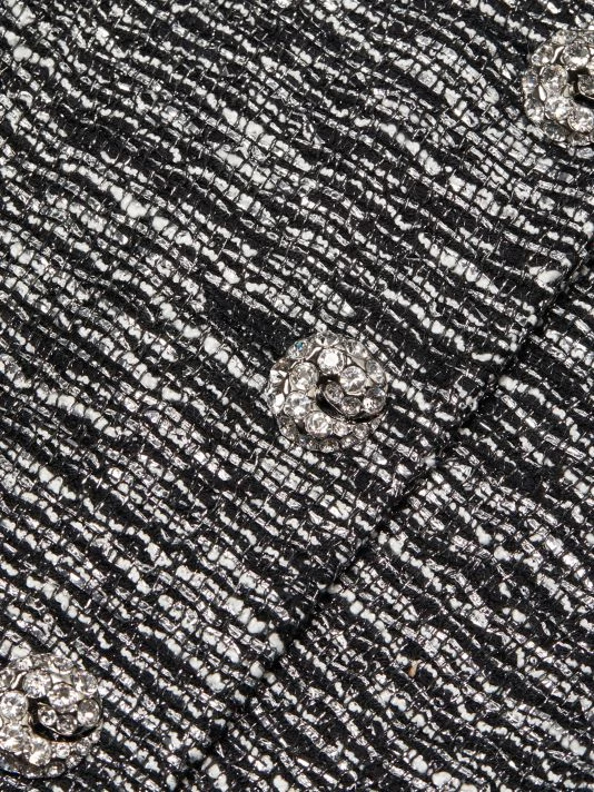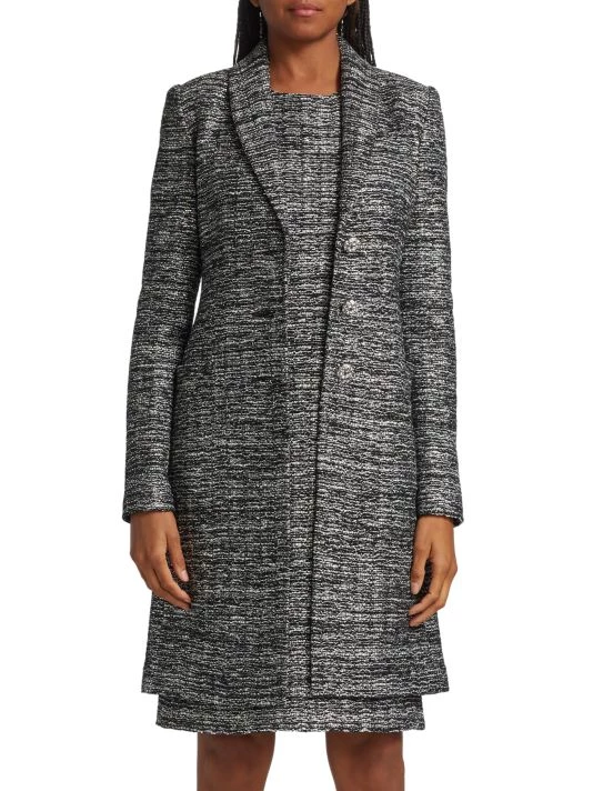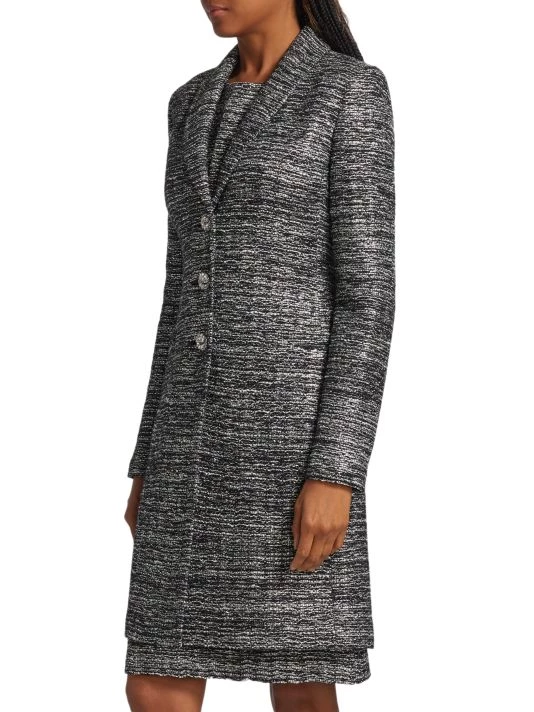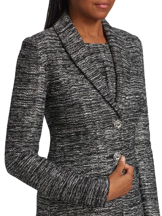 Designed with a refined, tailored silhouette, St. John’s bouclé jacket features subtle metallic detailing for a bit of shine.