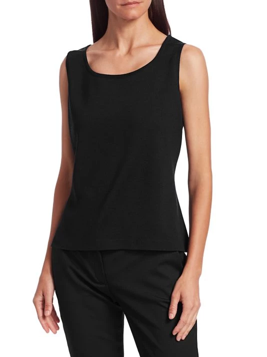 The perfect layering piece, this sleeveless scoopneck top is crafted of a luxe wool blend.