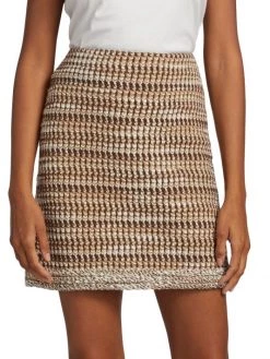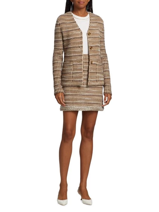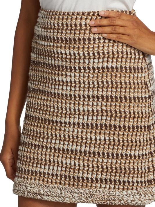 Mixed textures lend dimension to St. John’s knitted mini skirt, designed with contrast trim.
