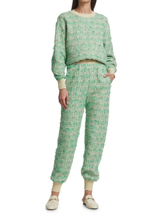 Elegant tweed is given a modern edge with a sporty banded ankle and jogger silhouette.