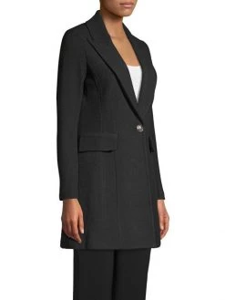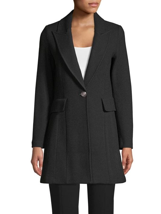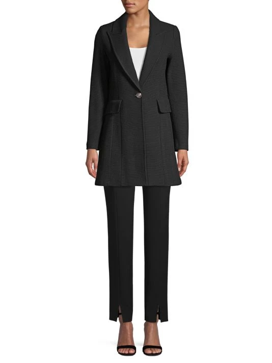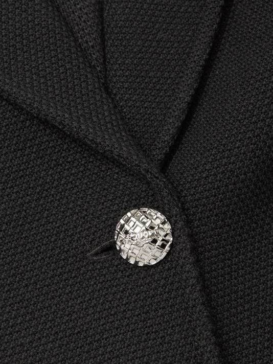 This elegant rib-knit blazer flaunts an A-line silhouette. Designed with a one-button closure, this piece lends spatial fluidity to the wearer.