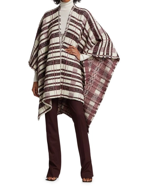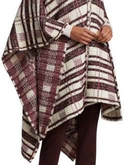 Featuring a classic plain motif, this woven knit cape is an easy throw-on topper.