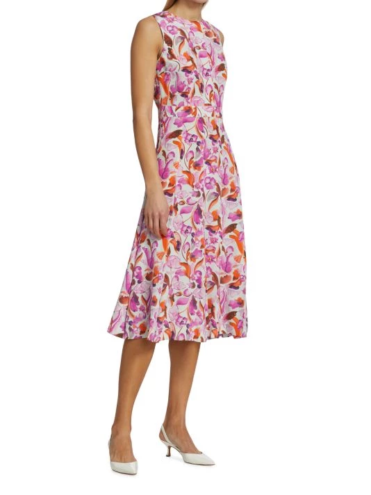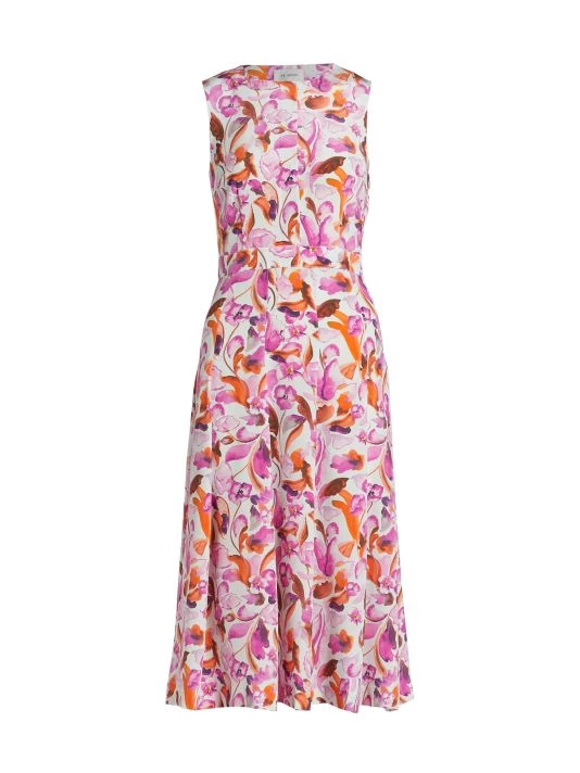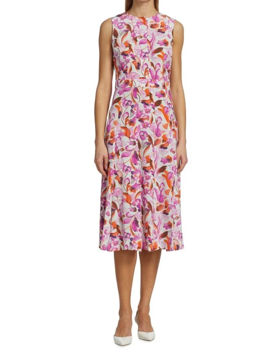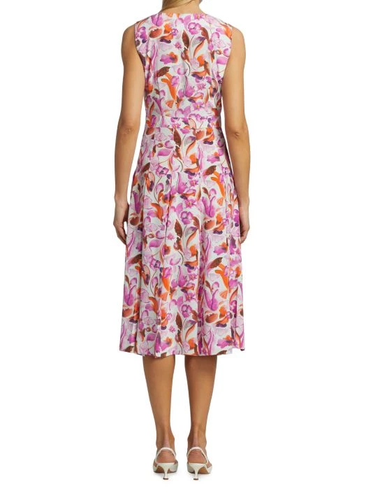 Boasting a watercolor-inspired floral print, this sleeveless silk midi-dress is complete with a banded waist and pleated skirt.