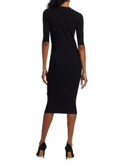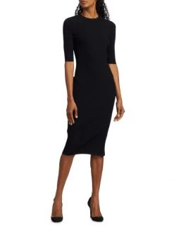 Cut for a slim fit, St. John’s rib-knit dress features a crewneck and elbow-length sleeves.