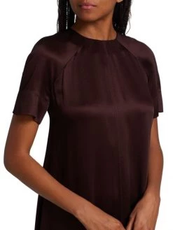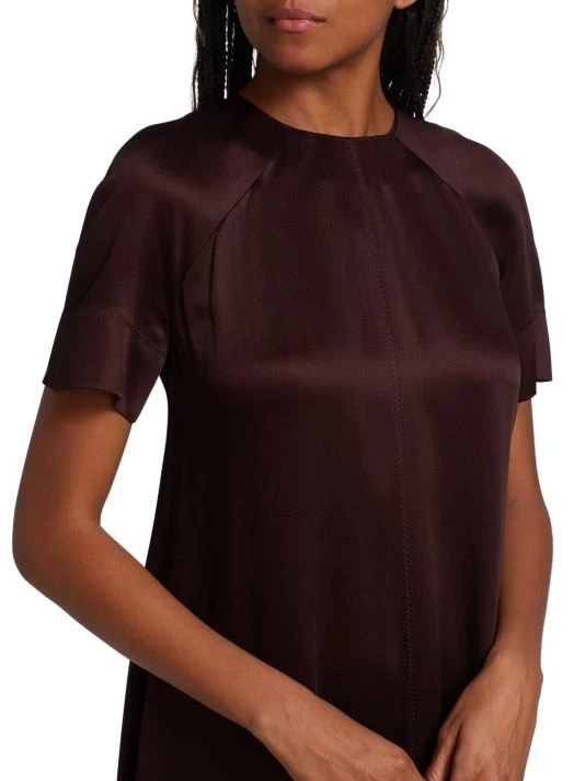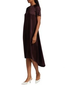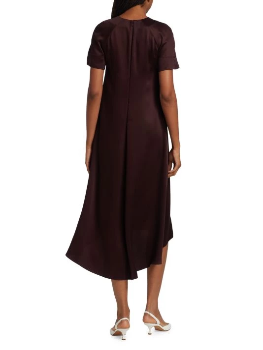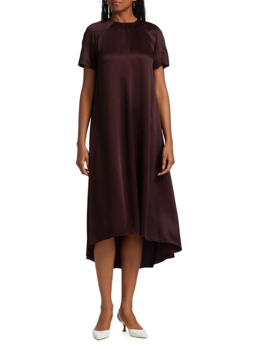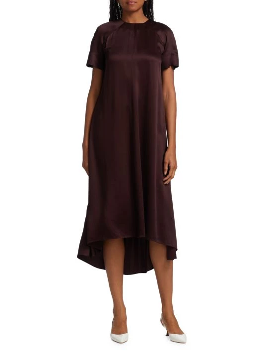 Crafted from sleek silk-satin crepe, St. John’s relaxed-fit dress is designed with a hi-lo hem for movement and shape.