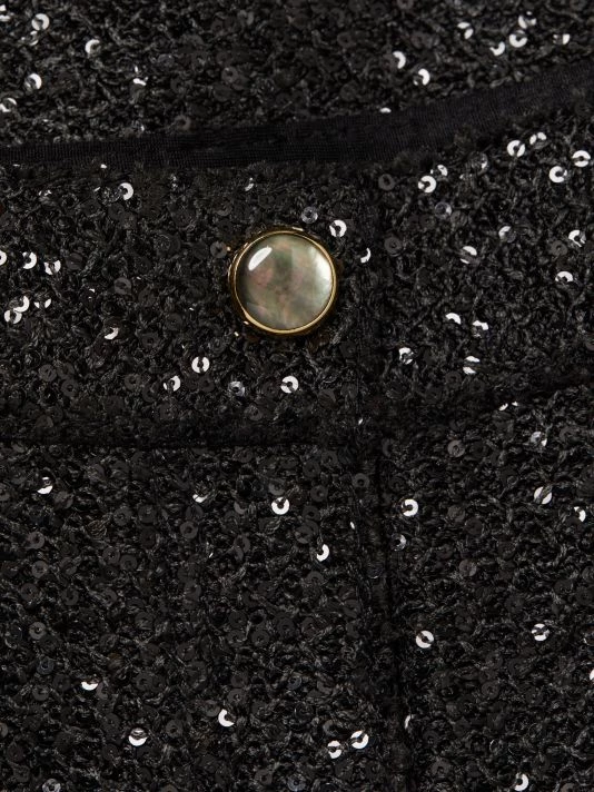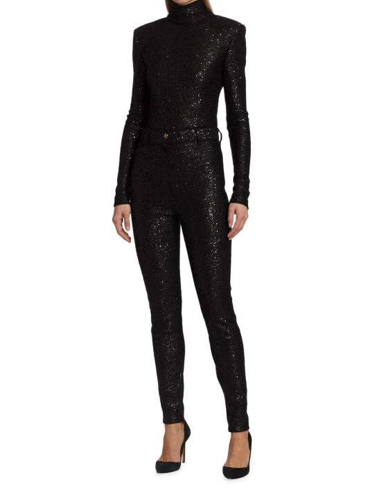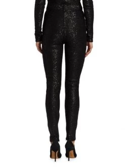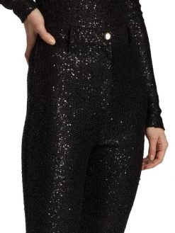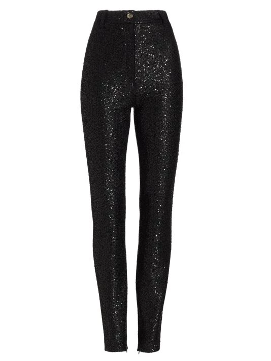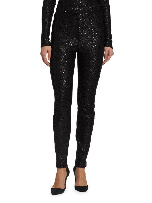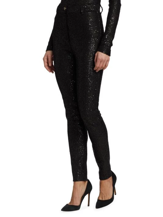 Cut in a high-rise silhouette, these knit skinny pant are defined by lustrous tonal sequin embellishments.