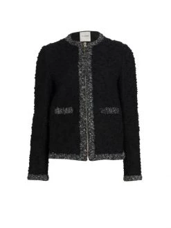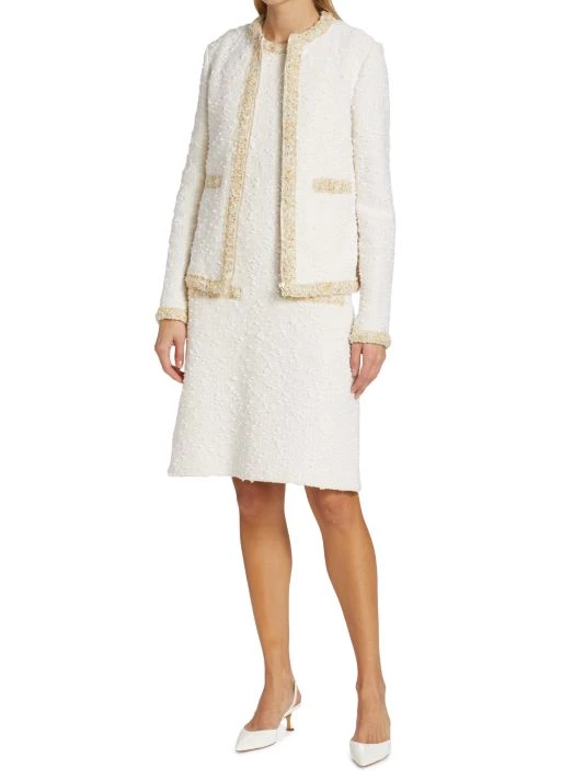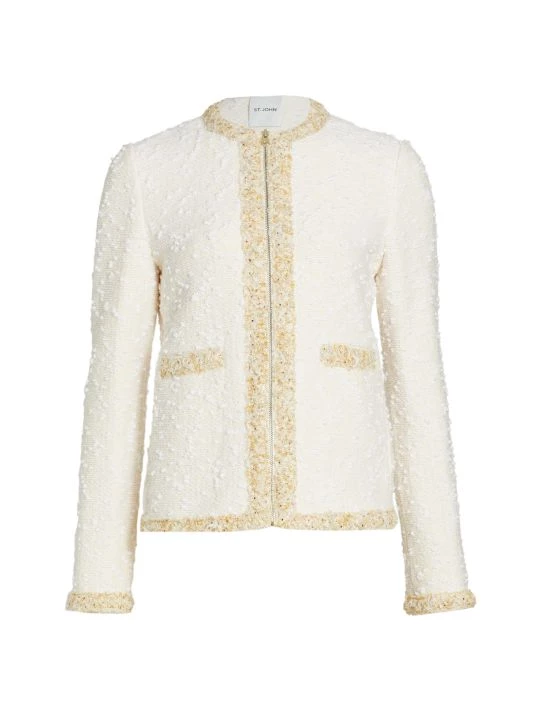 St John’s textured slub-knit jacket is cut in a cropped silhouette. Contrast trim and tonal sequin embellishments add dimension to this classic look.