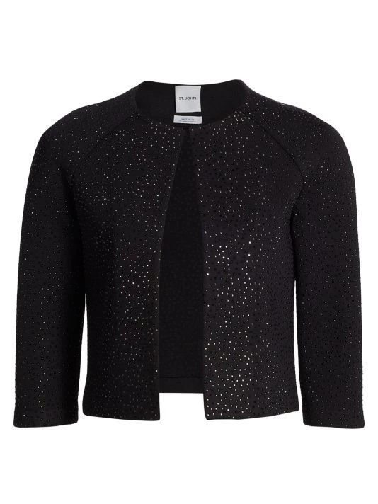 Glittering allover sequins add shine to this shrunken tailored knit jacket.