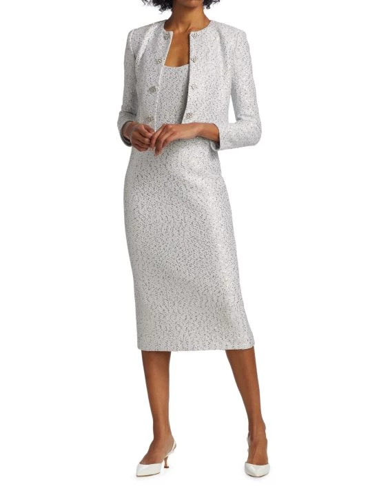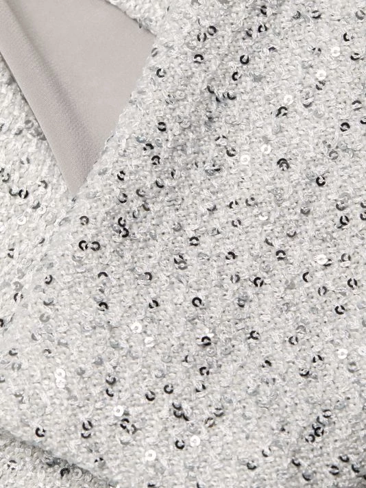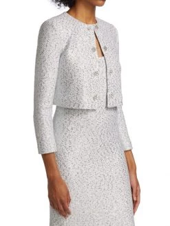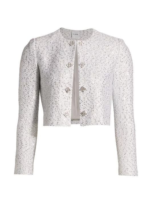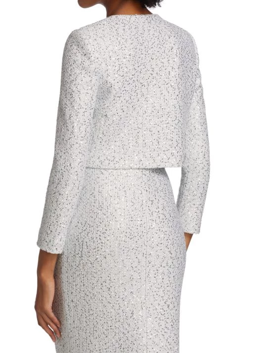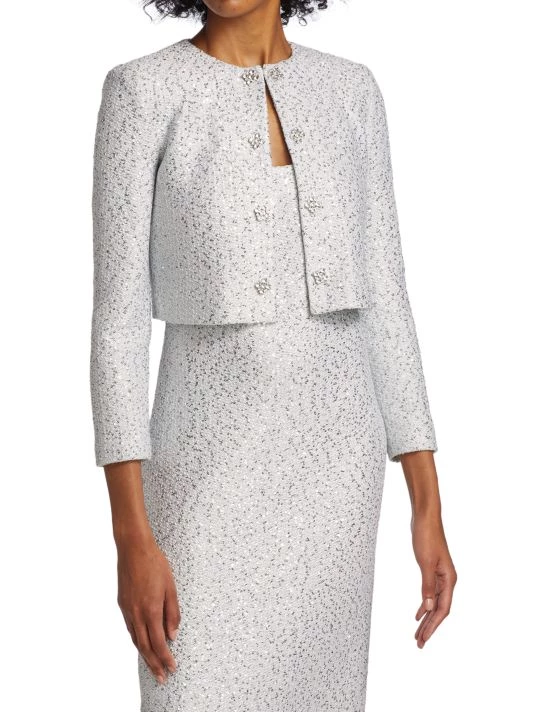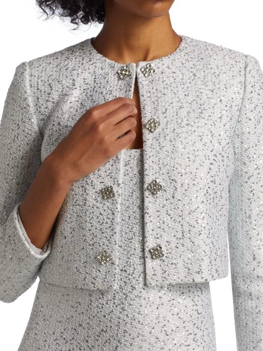 Tonal sequins add glittering shine to this cropped tweed jacket, designed with signature detailing down the front.