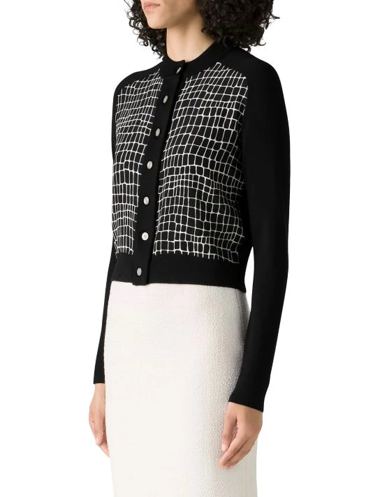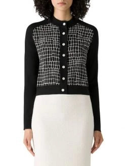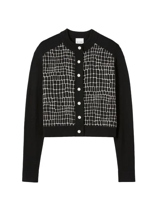 Knit from luxe wool, St. John’s cardigan is elevated by a silk crocodile-print front.