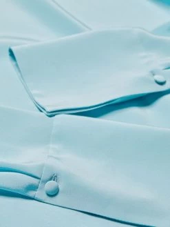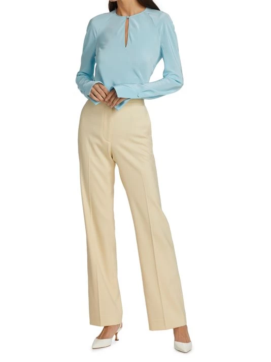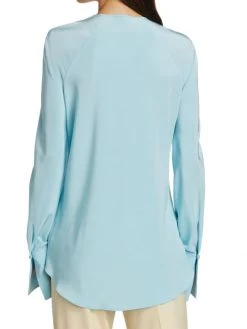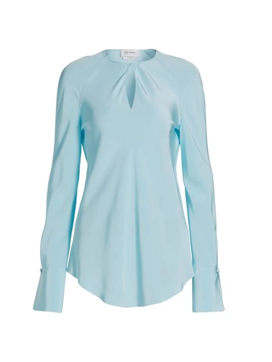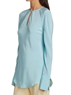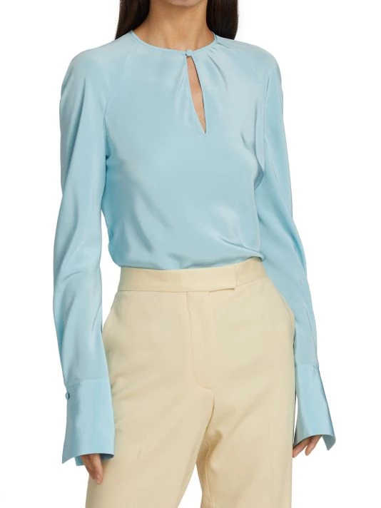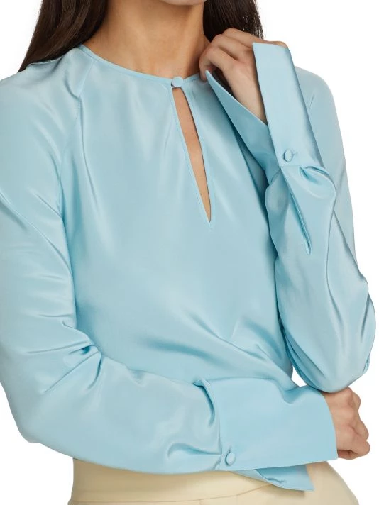 Lightweight silk blouse with a keyhole front and defining barrel cuffs.