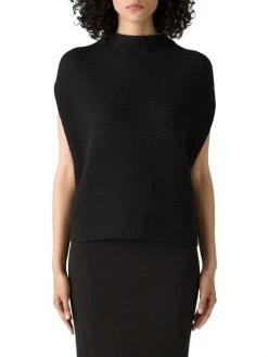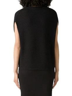 St. John’s sleeveless pullover sweater boasts textured basketweave knitting.
