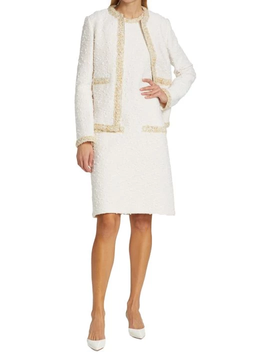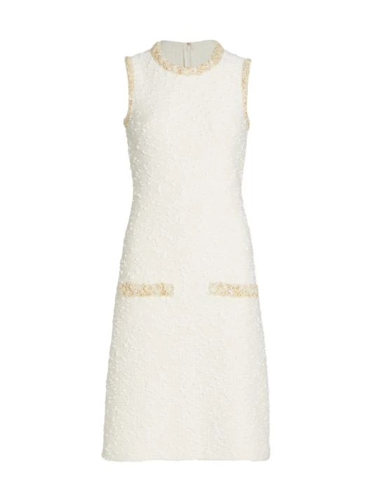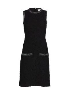 This sleeveless St. John dress is defined by textured slub-knit. Contrast trim and tonal sequin embellishments add dimension to this sleek style.
