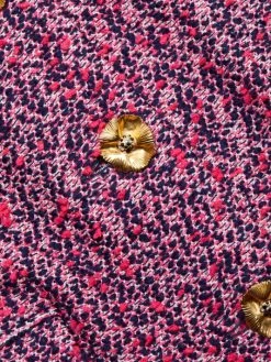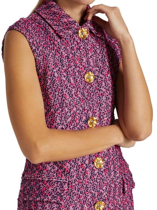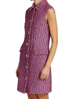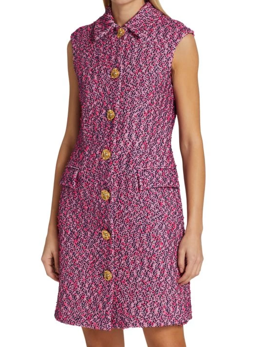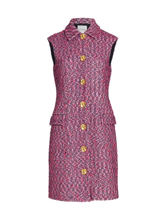 This St. John’s slub-knit dress is cut in a shirt-inspired silhouette. Metallic fabrication and a luxe goldtone button front offer a lustrous sheen.