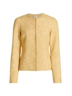 Speckled tweed knit jacket in a cropped silhouette with raw tonal trim.