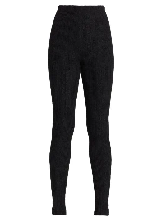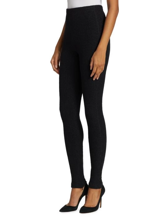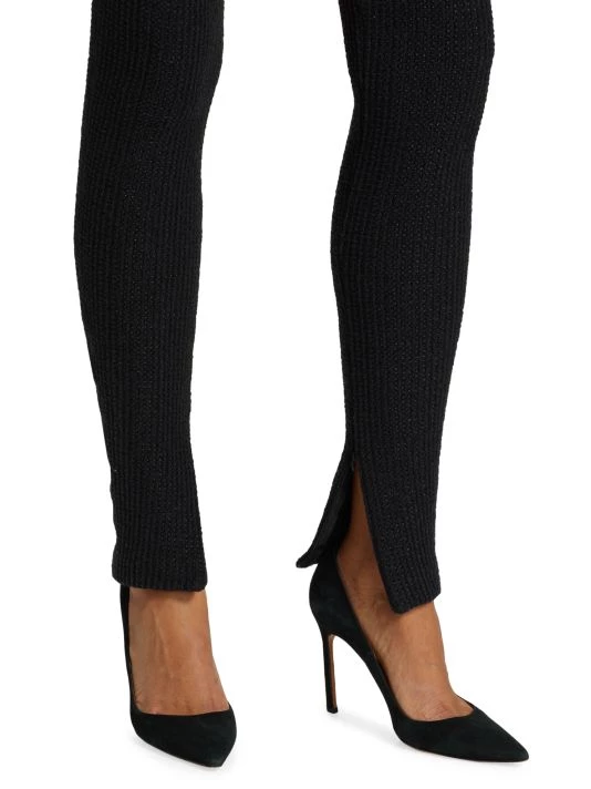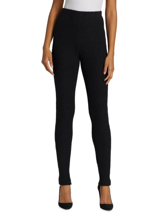 These chic stretchy leggings skim the figure with a mid-rise fit. Crafted of a bouclé-knit, these cotton-blend pants are fashioned with a soft texture.