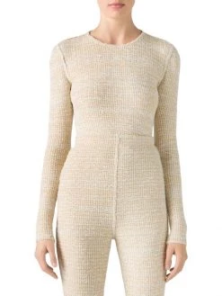 Skimming against this figure, this boucle-knit top features sleek zip vents at the cuffs.