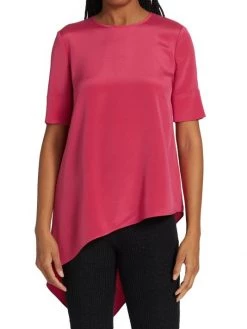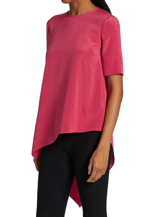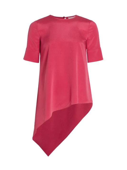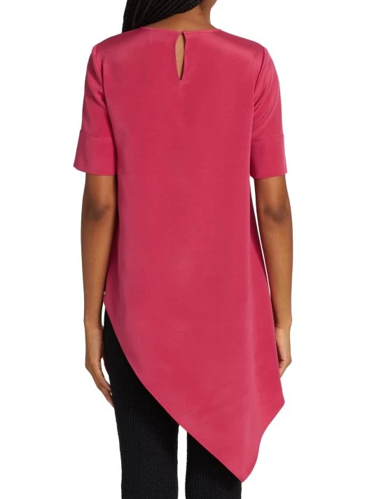 This oversized T-shirt is enhanced with a sweeping asymmetric hem, adorned with a button keyhole at the nape.