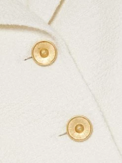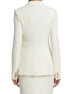 This tailored jacket is crafted of a textured tweed design, adorned with goldtone buttons and versatile patch pockets.