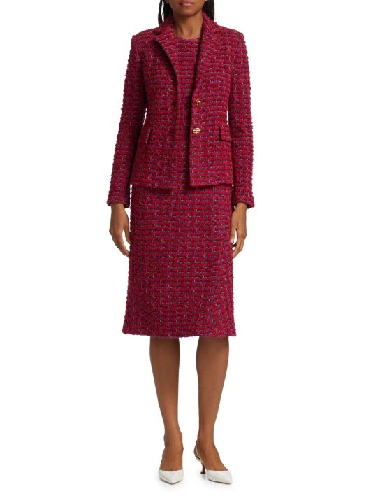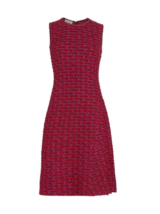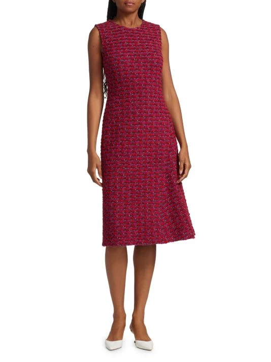 Cut from multicolor tweed bouclé, St. John’s midi dress has a flattering fit-&-flare silhouette.