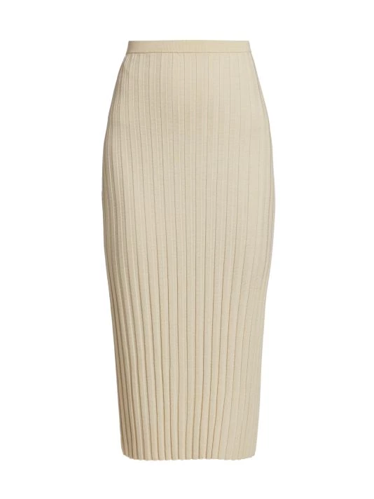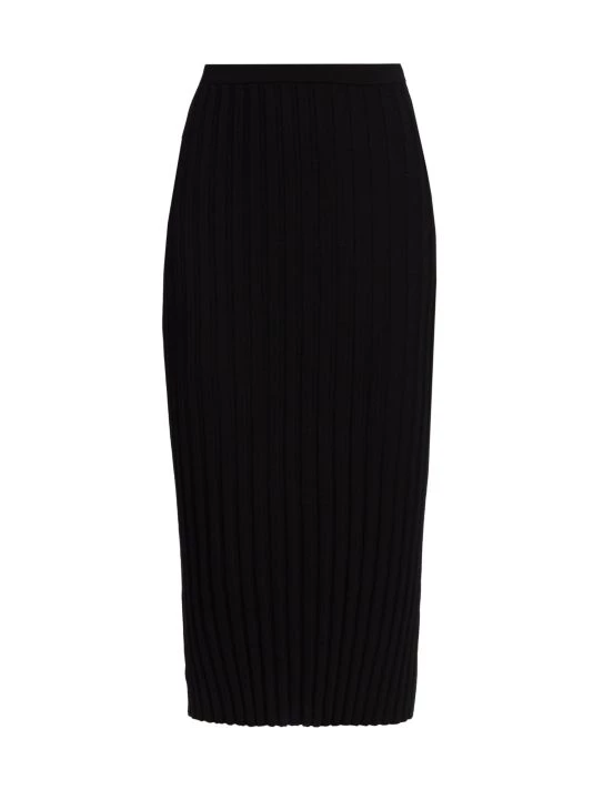St. John’s wool-blend Vanise midi-skirt features a form-fitting silhouette, high waistline, and ribbed-knit detailing.
