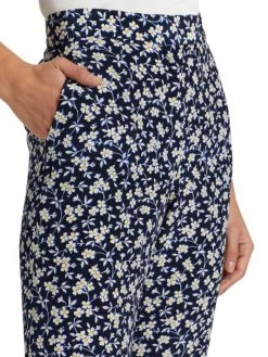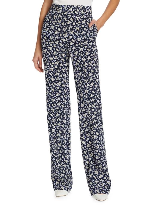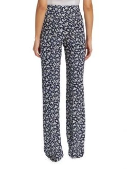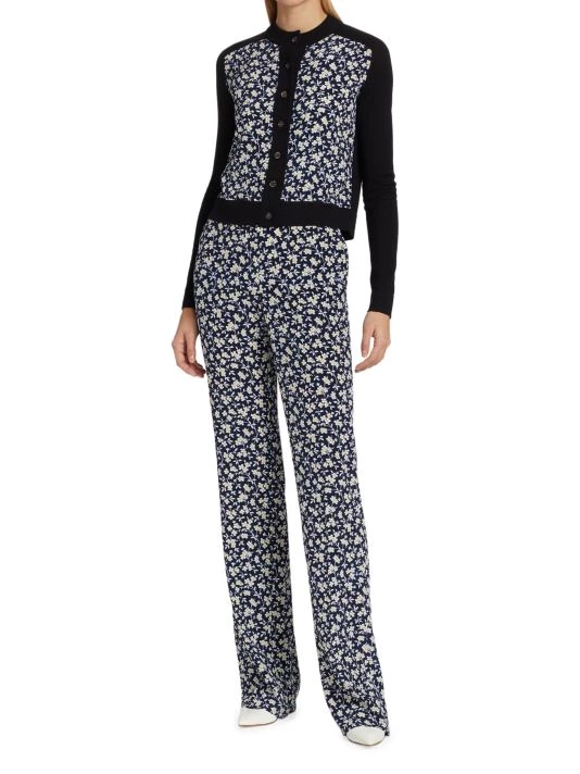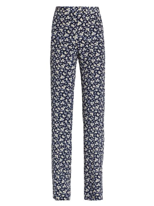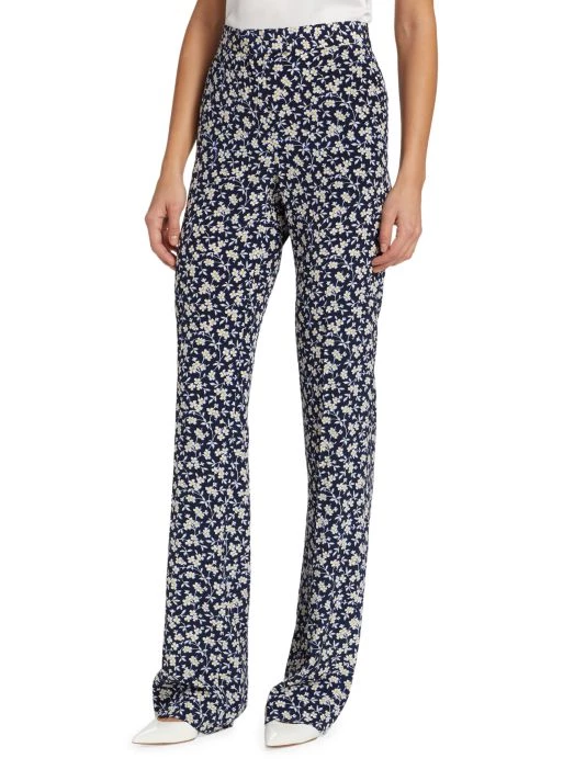 High-rise crepe de chine trousers in a straight-leg silhouette with contrast wildflower print.
